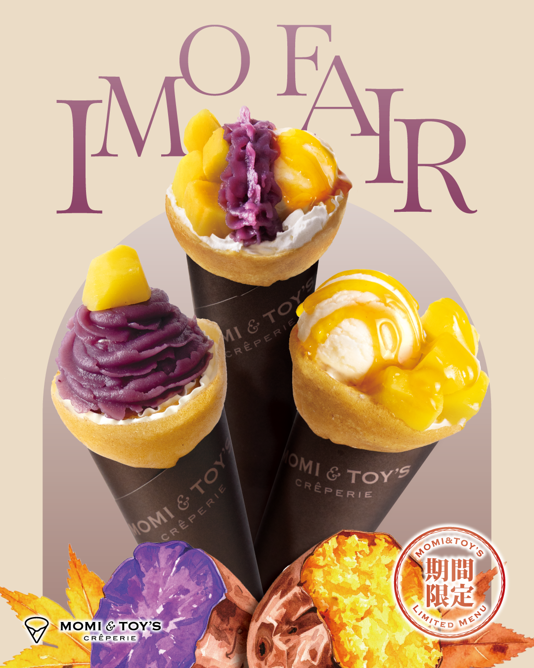 2025 年 8 月 26 日 (火)から3 種類のお芋たっぷりクレープを期間限定で販売致します。